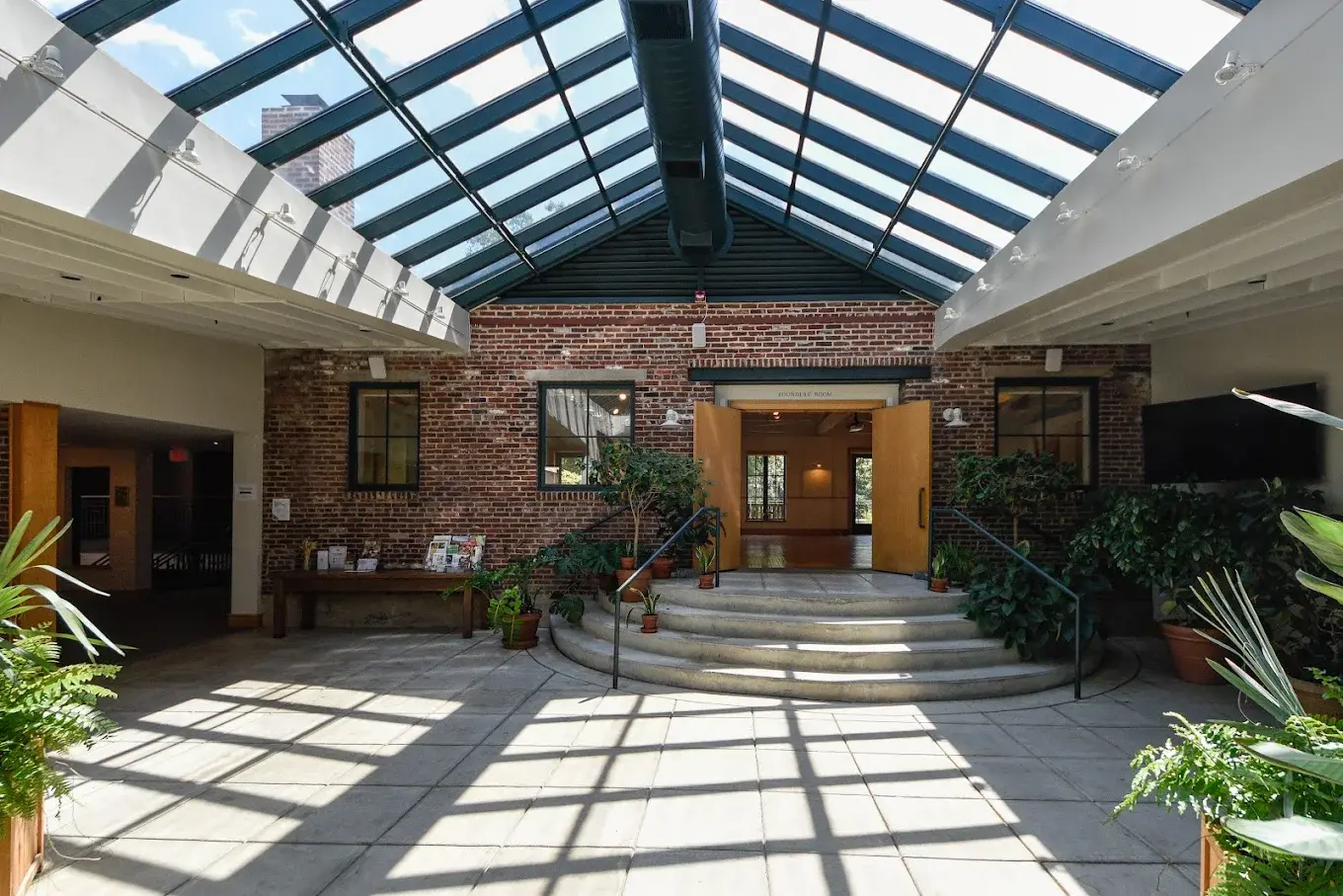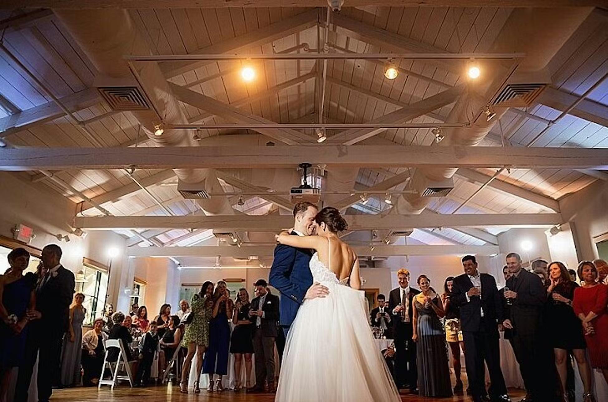 The Founders’ Room is the Center’s premier indoor gathering space, blending historic textures with modern design. Characterized by its soaring exposed beams, original hardwood floors, and over-sized windows that flood the room with natural light, it offers a clean and character-rich palette for any wedding style. The room’s open layout encourages a seamless flow between dining and dancing, while its unique architectural details provide a warm, gallery-like feel. It is a stylish and climate-controlled sanctuary that ensures your celebration remains elegant regardless of the season.