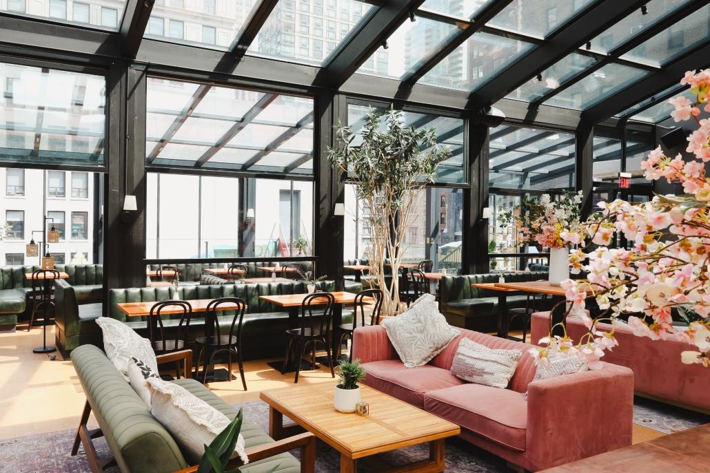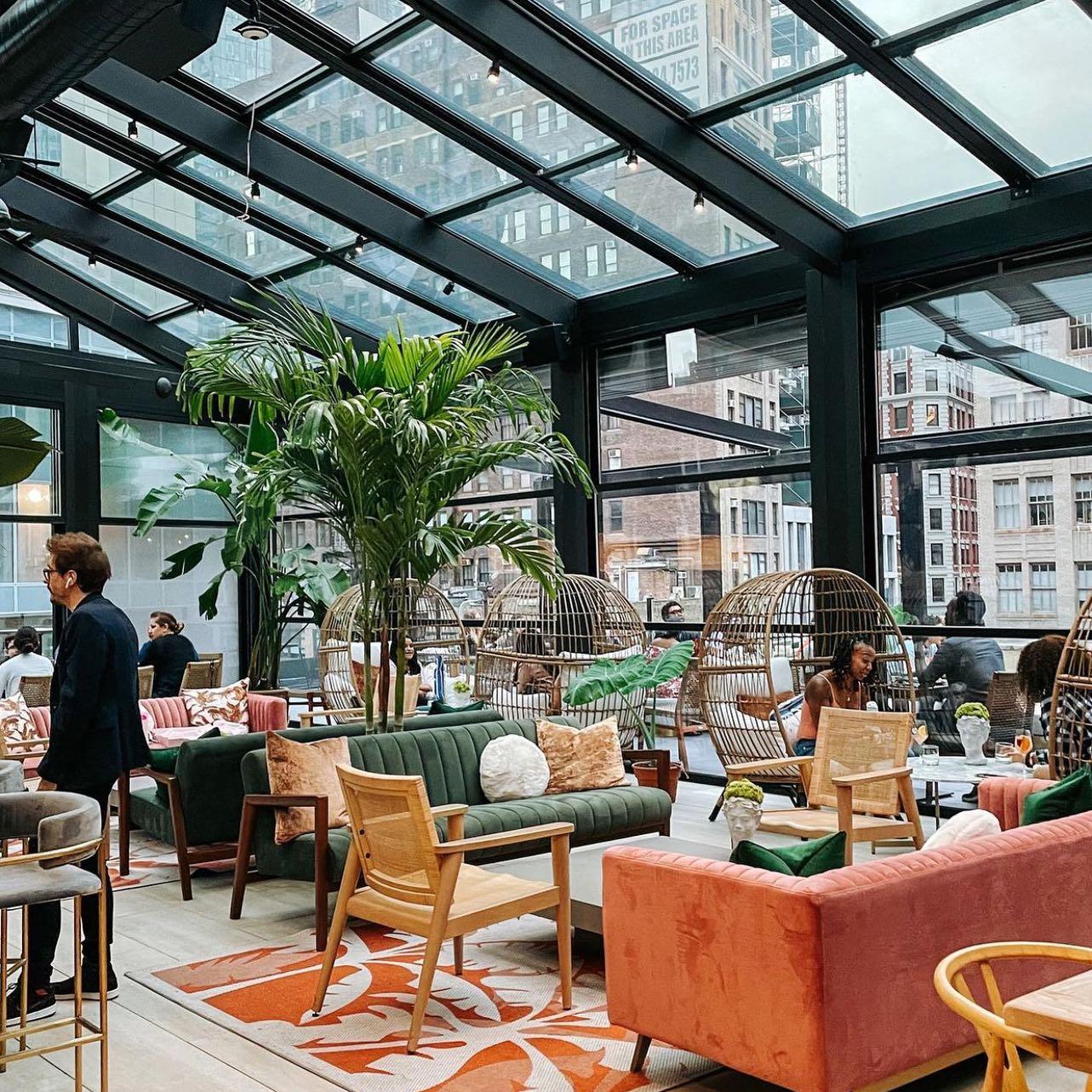 The Glass Ceiling is just that, a beautiful rooftop cocktail lounge with a stunning glass ceiling sitting atop the city skyline in the heart of Nomad, Manhattan. The design adds a glamorous touch to the botanical theme, The Glass Ceiling is a “secret garden” in the sky. The space is multi-dimensional – shifting from a lounge serving light bites and cocktails to an intimate, curated events space. Featuring indoor and outdoor seating, show-stopping views of the Empire State Building, and an escape from your everyday urban routine. The name ‘the glass ceiling’ has a higher purpose. It is a metaphor that has long been used to represent the invisible barriers that prevent women and underrepresented communities from rising beyond a certain level in a hierarchy. We’re empowering the community to break through ‘The Glass Ceiling’ with us. We have plenty to celebrate, and welcome ALL of those wanting to join us.