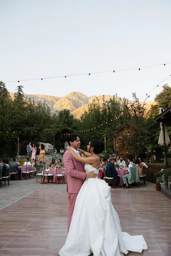 This space looks into the gorgeous San Bernardino mountain side and has trees that surround your guests.