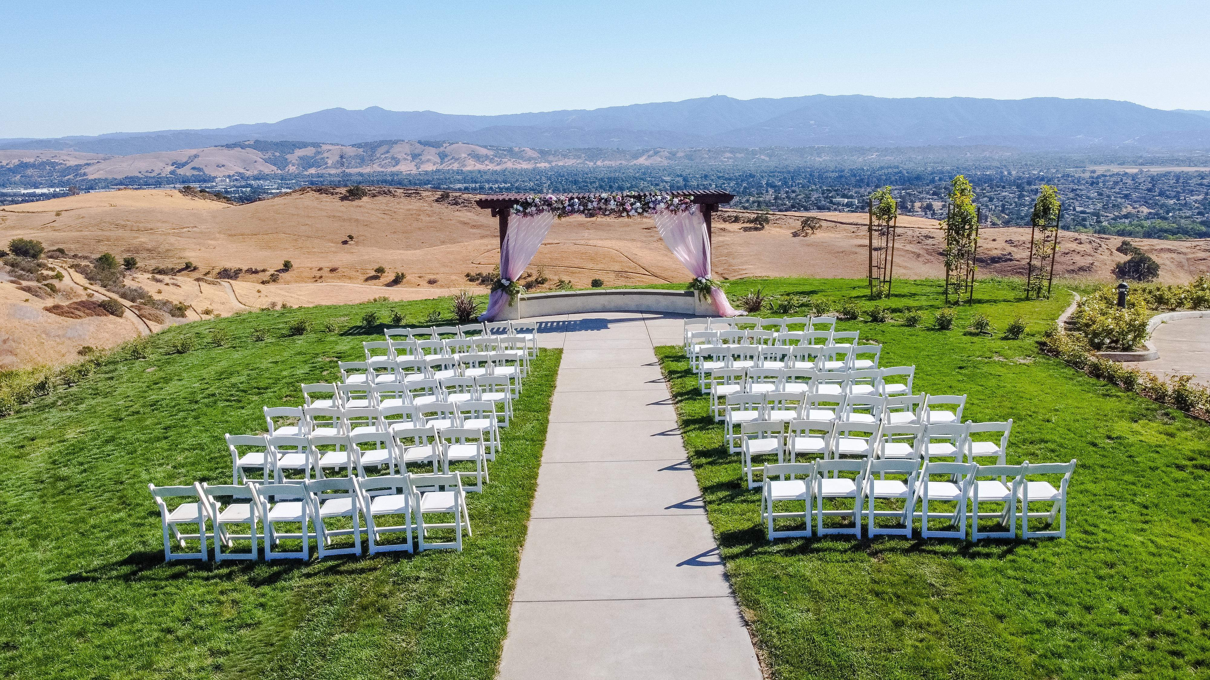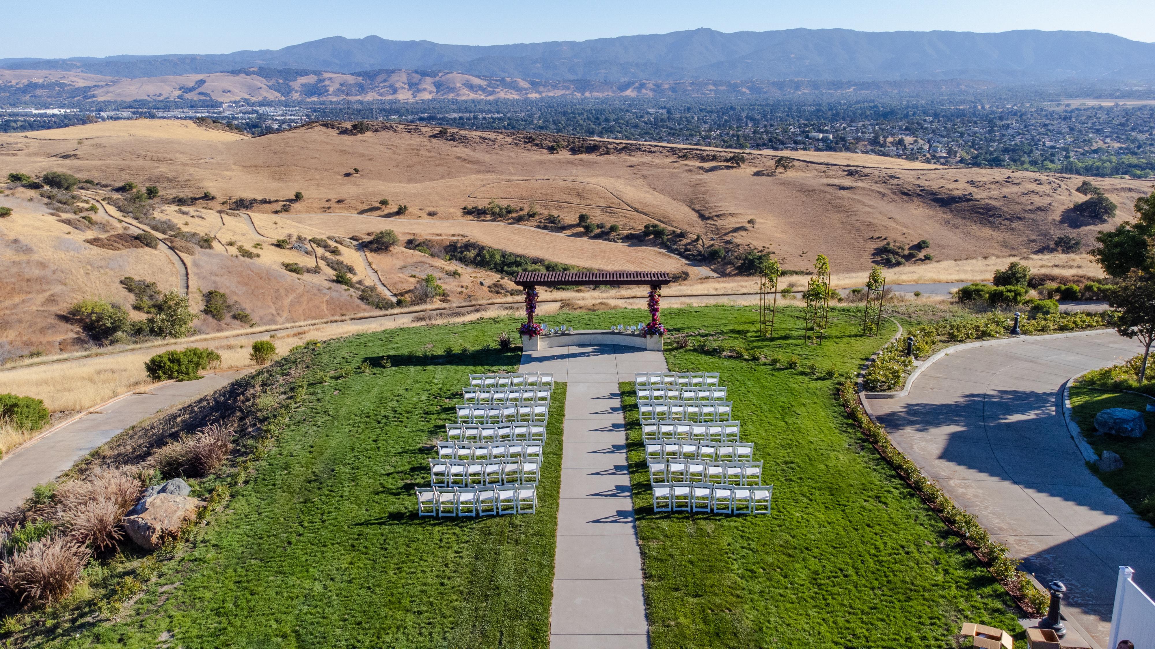 Panoramic views of rolling hills and the San Jose skyline provide a breathtaking backdrop as you say 'I do.'
