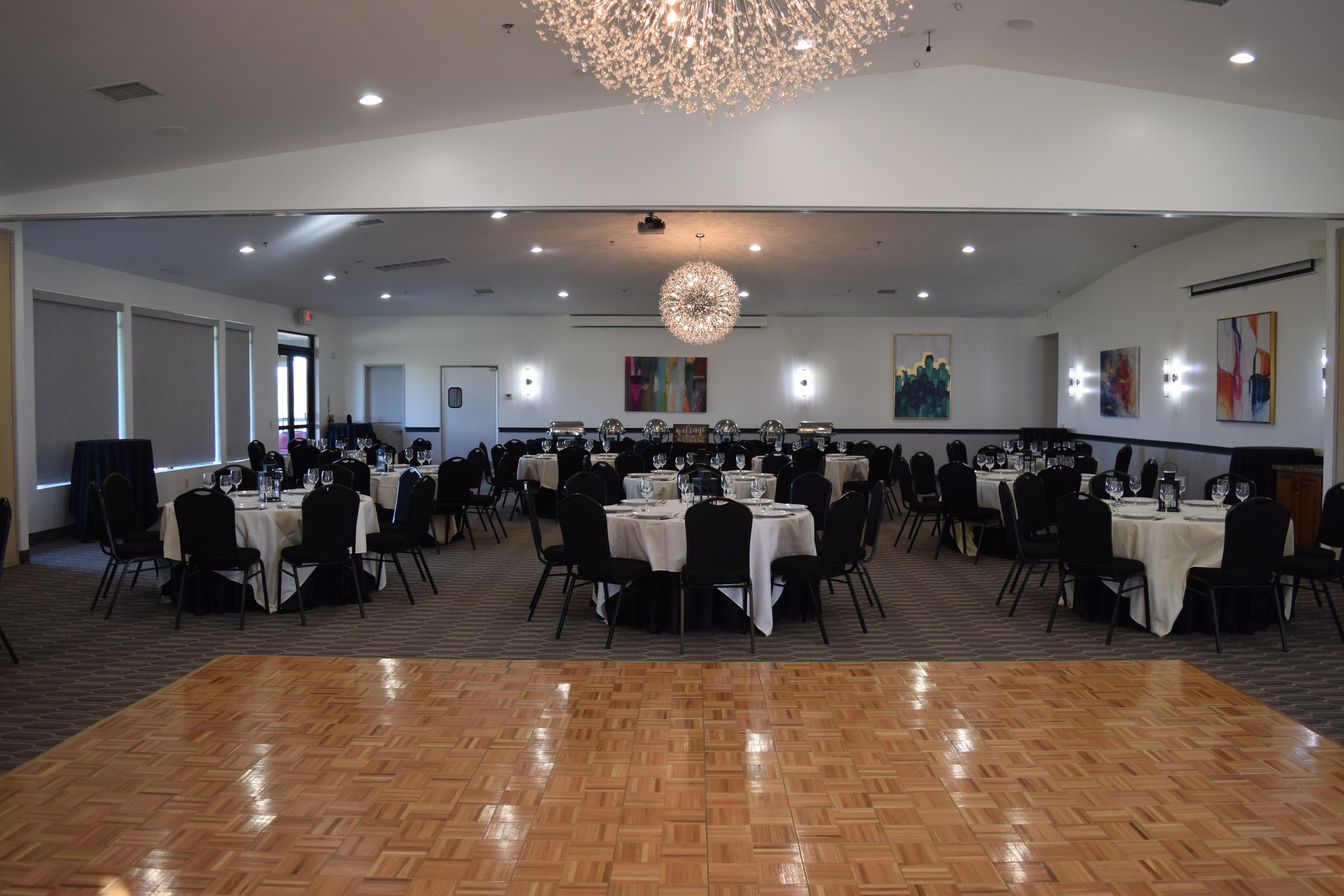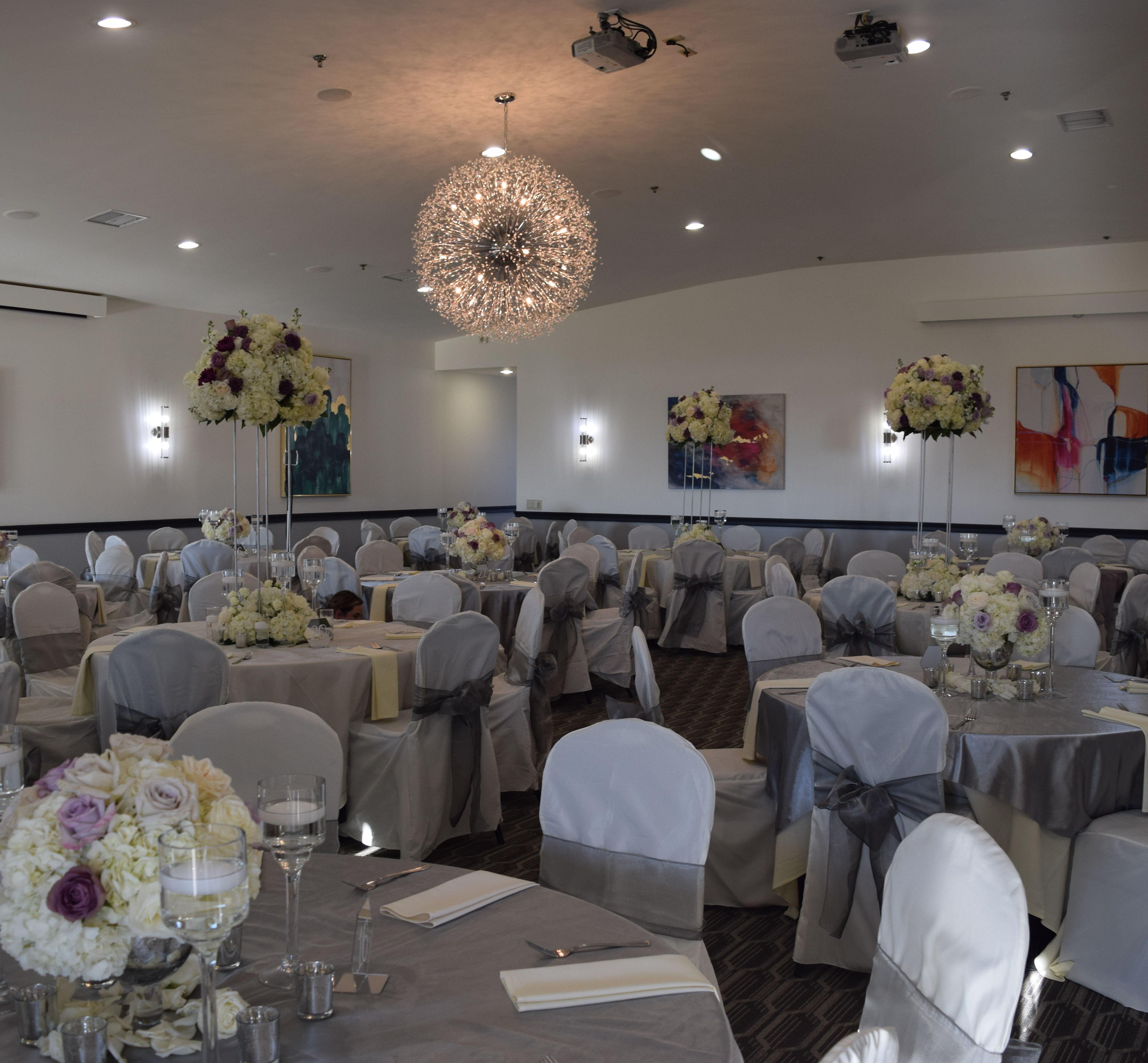Our venue offers 4000 sf of space for a wedding reception. Large pane free windows overlook the driving range and the view extends to the Phoenix Valley. The view is extraordinary and offers a kaleidoscope of colors provided by nature.