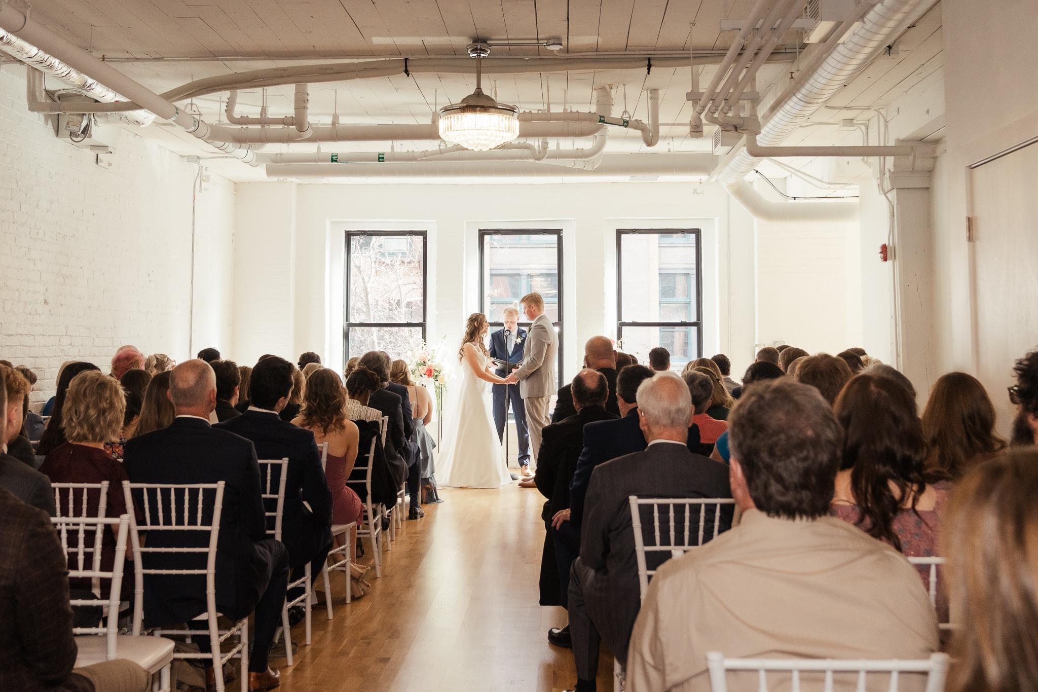 Our Chapel space offers the perfect setting for an intimate wedding ceremony, surrounded by the warmth of natural light streaming through expansive windows. Overlooking charming downtown views, this bright and airy room creates a romantic backdrop for exchanging vows with your closest loved ones.