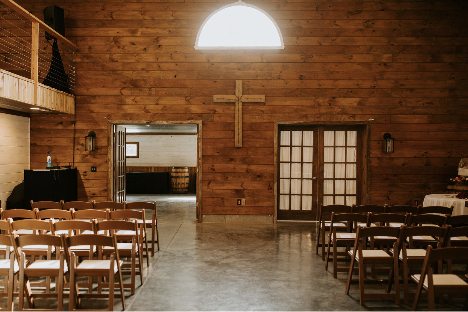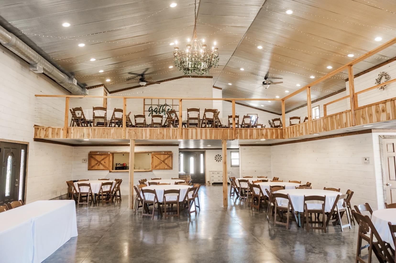 Beautifully updated, open, barn reception area that allows guests to enter with zero steps and the ability to view the party from the balcony also!