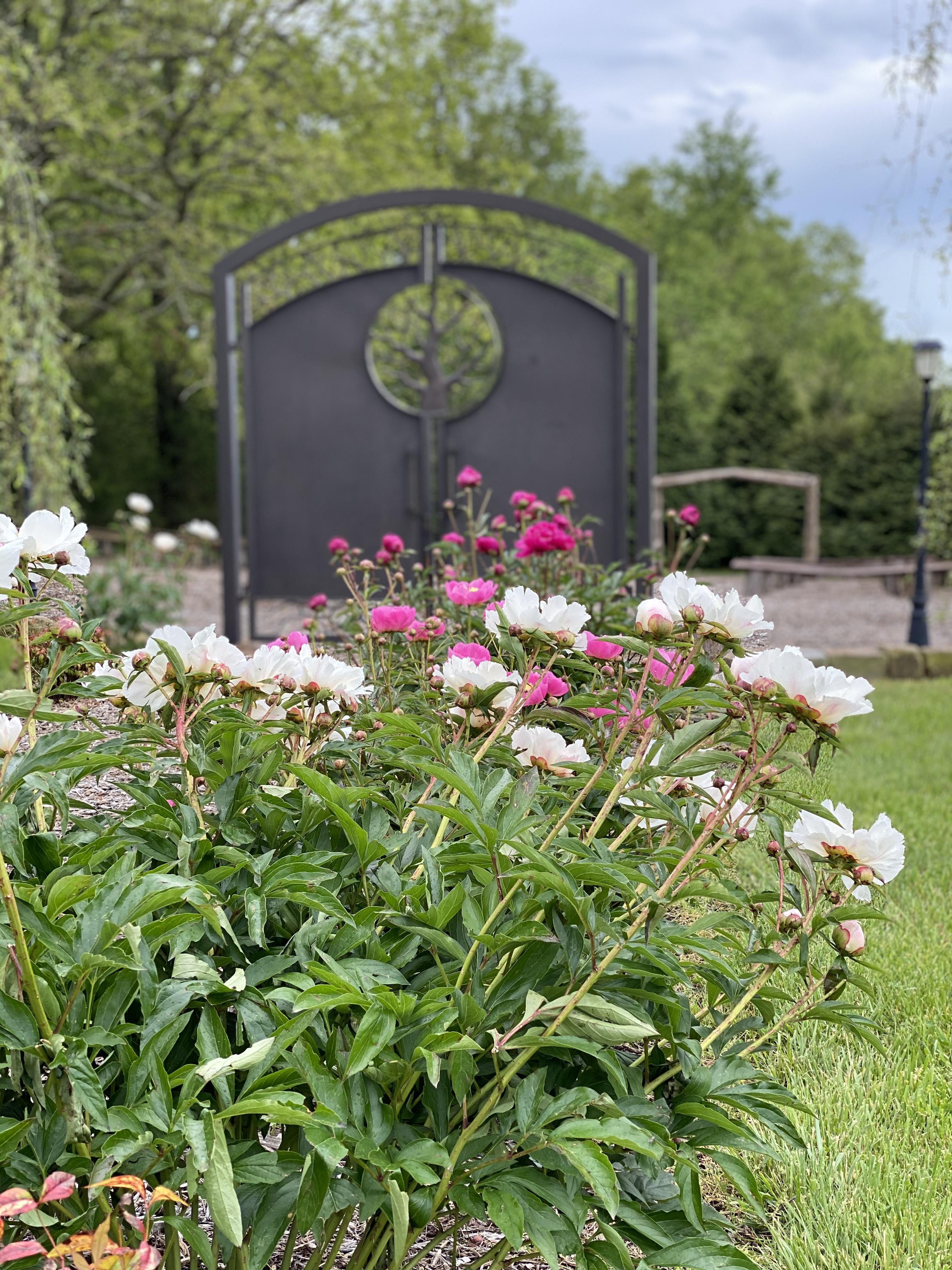 What an entrance for our brides to be introduced to her guests with this custom metal gate. It is unique, simple and modern all in one. Beautiful outdoor ceremony space is surrounded with trees, acreage and farmland. The backdrop has a touch of modern farmhouse. Guests get to sit on stadium style wood benches, so everyone is able to see the view nicely