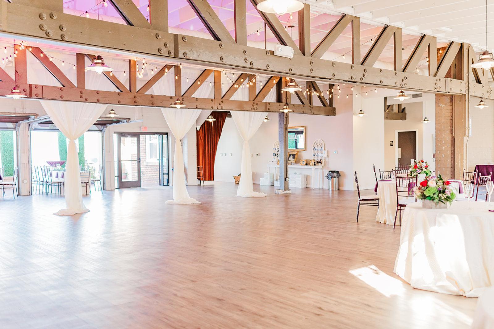 When we converted this old train station loading dock from an old, dusty warehouse into an up-scale private event space, we envisioned romantic candle lit dinners under the warmly lit Italian wedding lights and dark wood beams. With the walls electrical units prepped for live musicians and photo booths, this 4,400 square foot space is loaded with style and capabilities to host either intimate or full-scale productions. Our max capacity is 270 guests, or 200 with a seated reception and full dance floor that flows openly to our custom bar area. We also feature an entire length wall of open garage doors that spill in loads of natural light and invite your guests onto our mahogany wood deck with a picture-perfect boxwood terrace and fresh air to enjoy.
