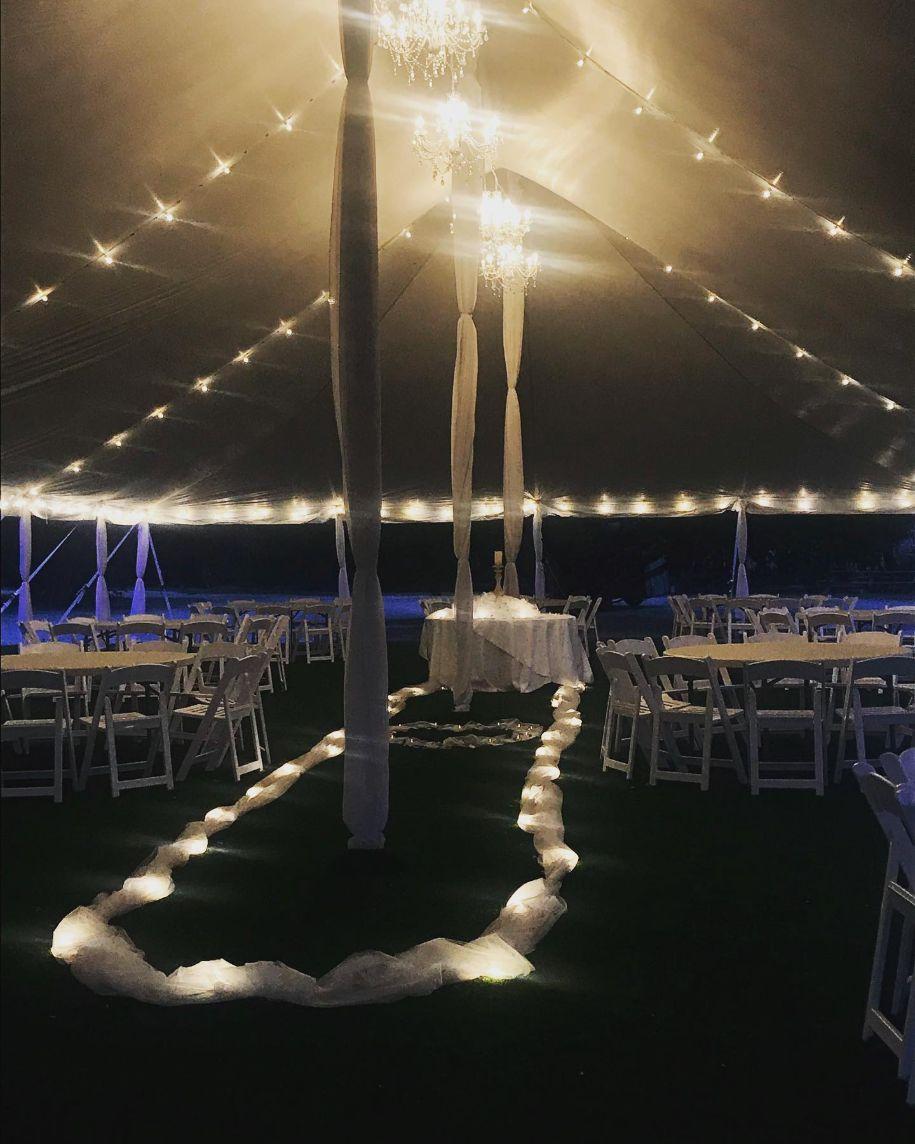 Within this private location are commercial kitchens, a dining hall for rehearsal dinner, reception hall with bar, high table cocktail lounge with bar, an exquisite outdoor high capacity event tent and courtyard, separate bride and grooms cabins, a private honeymoon cabin as well as options for on-site lodging for dozens of guests of the wedding party. Also on site are multiple hookups for out of town guests with RVs. Hook ups close to reception halls are also provided for your mobile food trucks or caterer. Chairs and tables are provided. ā