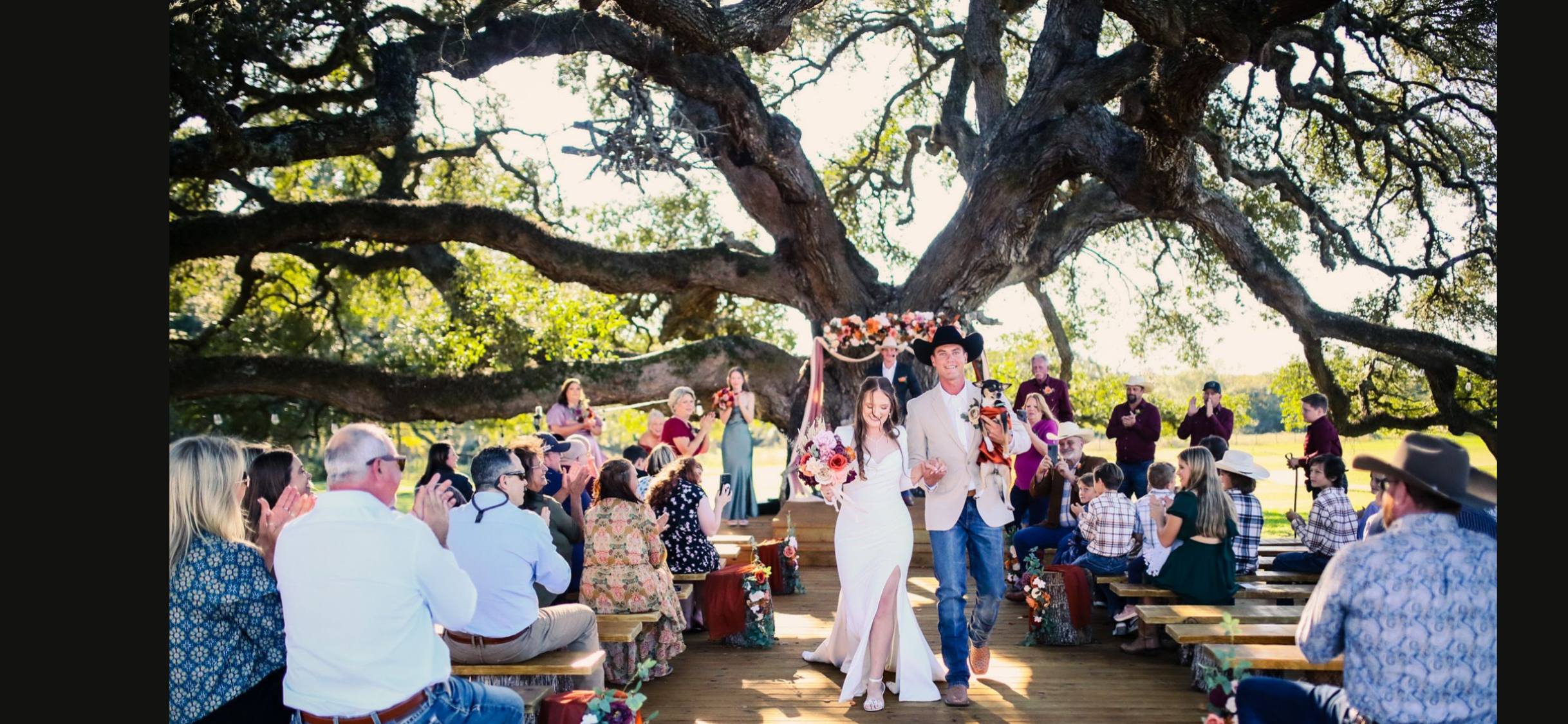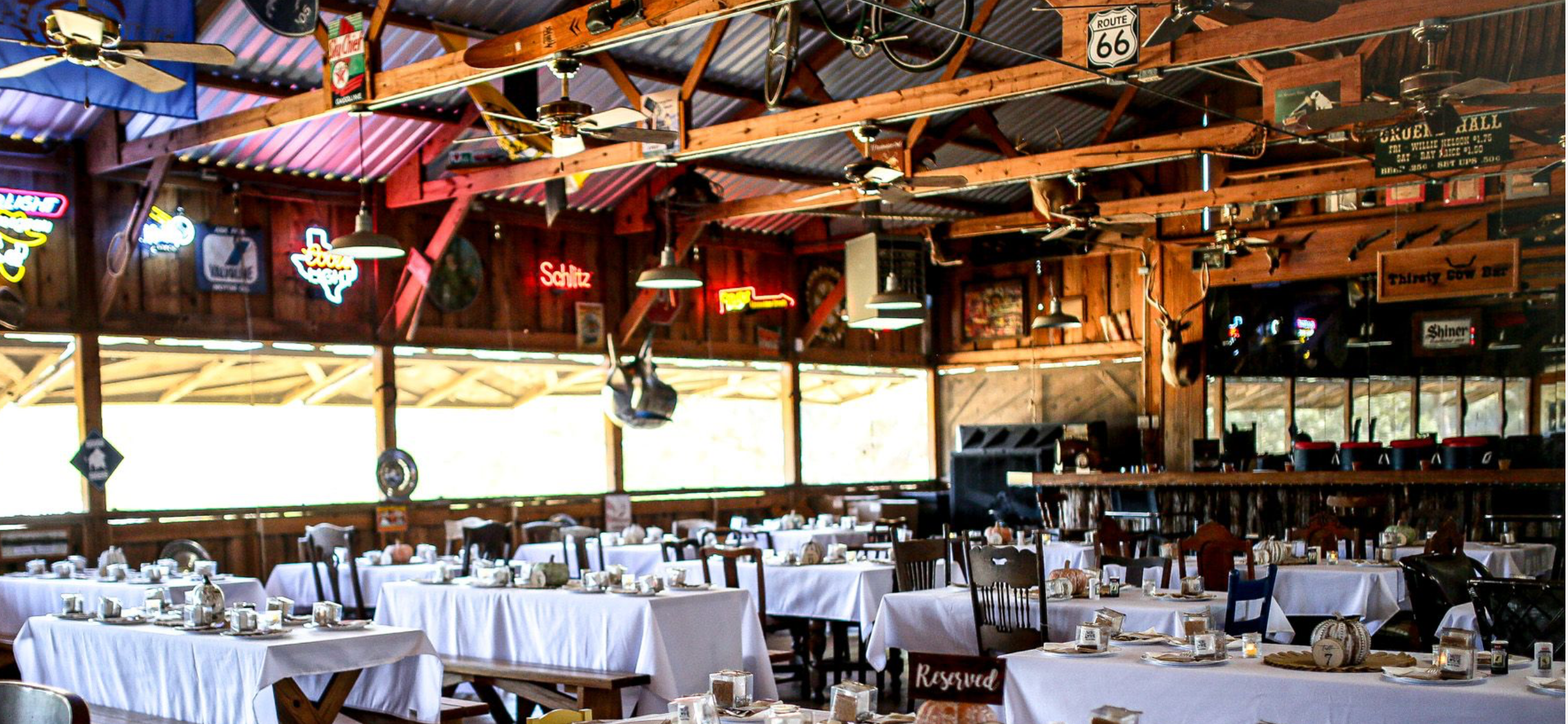 Host your next gathering in style at our stunning event space. Conveniently located off Interstate 10 between Houston and Austin. This property was previously owned by the late Charlie Thomas former owner of the Houston Rockets and was frequented by celebrities and dignitaries, but now it's available for your dream wedding. The dance hall is fashioned after the famous Gruene Hall. Are dance hall is complete with a bar and stage. Attached is a silo with a grill and we are ready to bread your dream menu. We have a Bridal suite where you and your bridesmaids can get ready for your big day also a Grooms Casino suite for the guys. Say "I do" under our Heritage oak tree! What better way to say your "I do" then under our 350 year old oak tree that is 120 feet wide. At the heart of the tree is a stage for the couple to say there "I do". We have so many more amenities to offer from reception kitchen, church, movie theater, school house. Rustic barn and lodging come soon too.