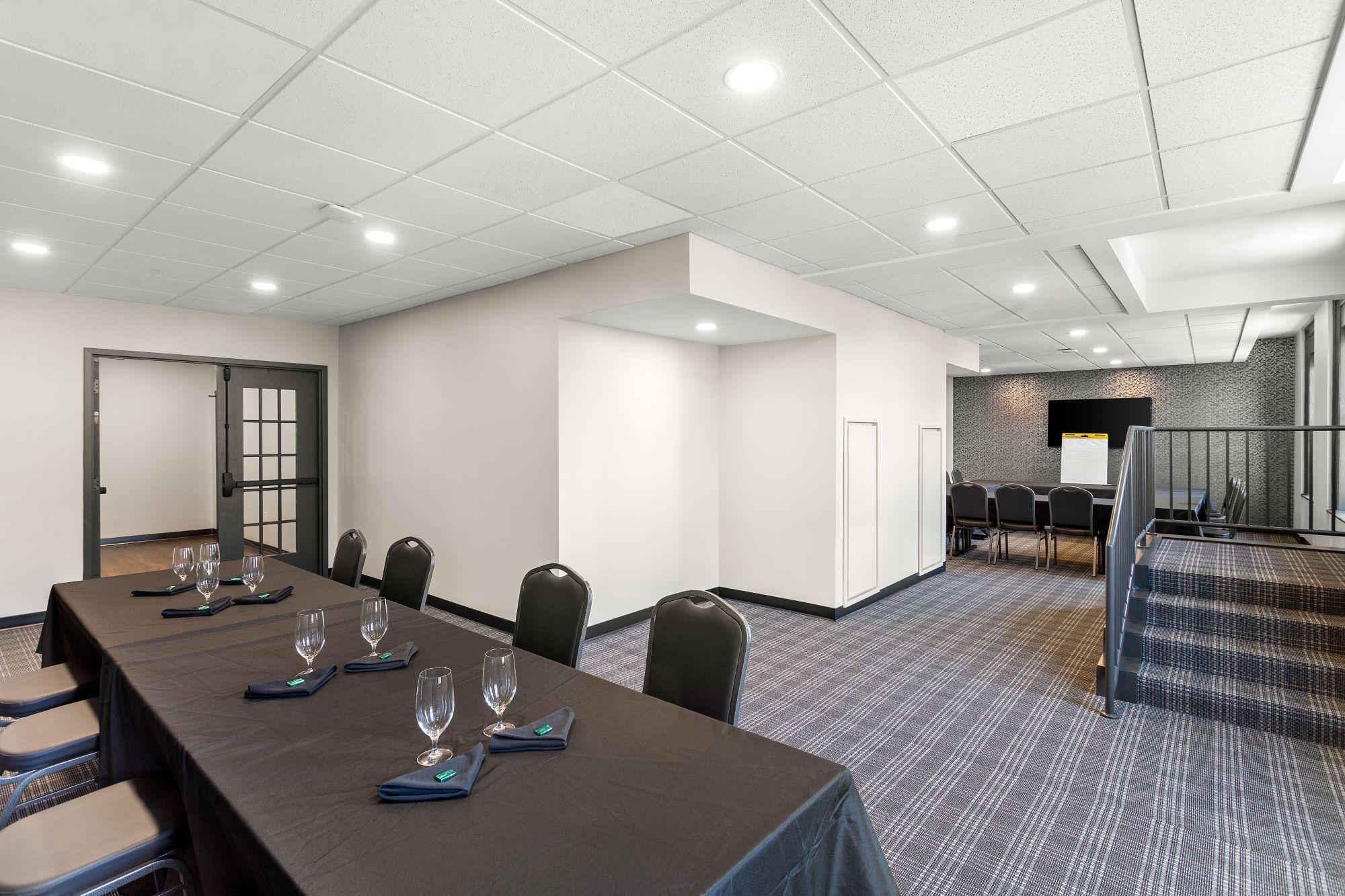 The Louis McNeill Conference Room at the Tygart Hotel is an intimate venue ideal for wedding showers, bridal parties, private meetings, and small social events. Located on Level 2, the space includes onsite catering, a setup area with sink and storage, visual setup options, and access to a balcony overlooking historic downtown Elkins. With boutique charm and full-service hospitality, it offers the perfect blend of comfort and style for your special gathering.